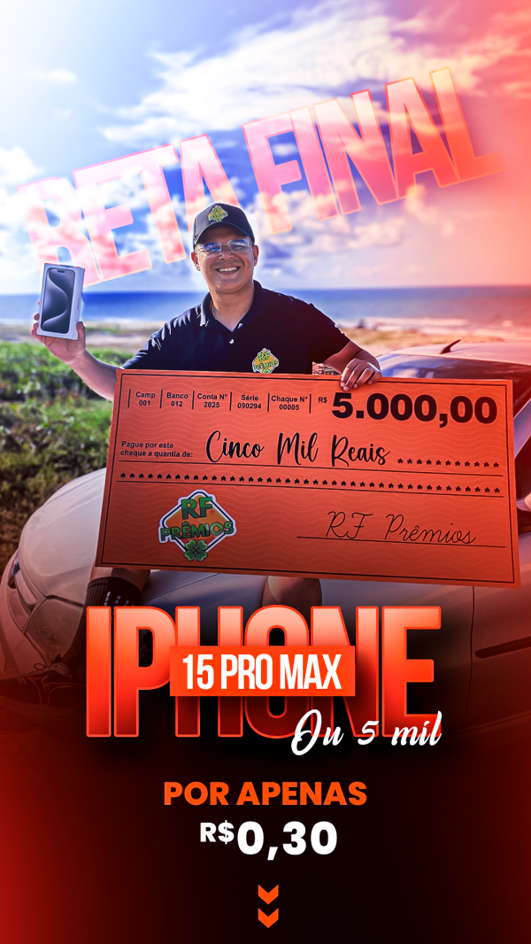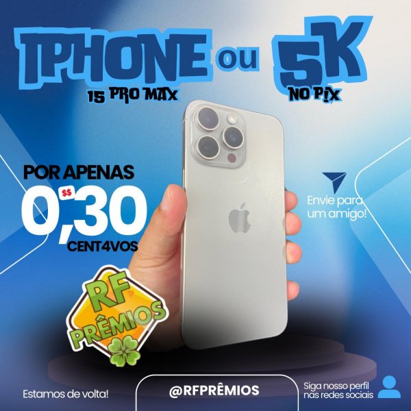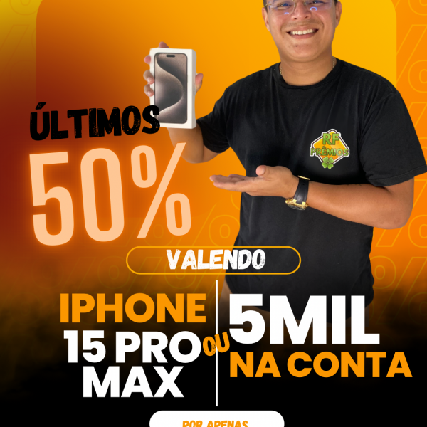 1º PRÊMIO: iPhone 15 Pro Max ou 5mil